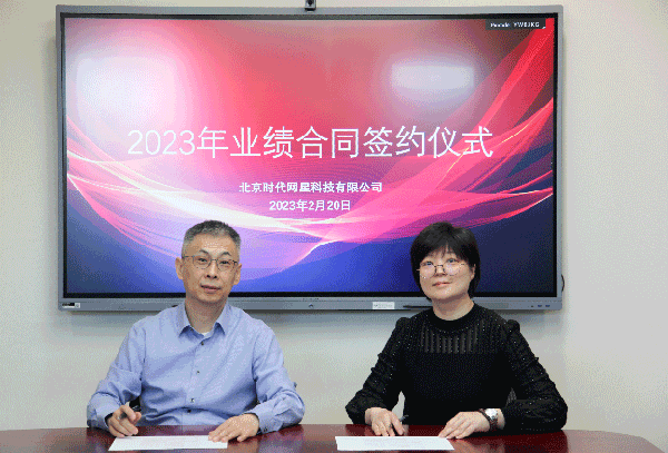 時代網(wǎng)星總經(jīng)理趙欽與各部門負責人簽署業(yè)績合同
