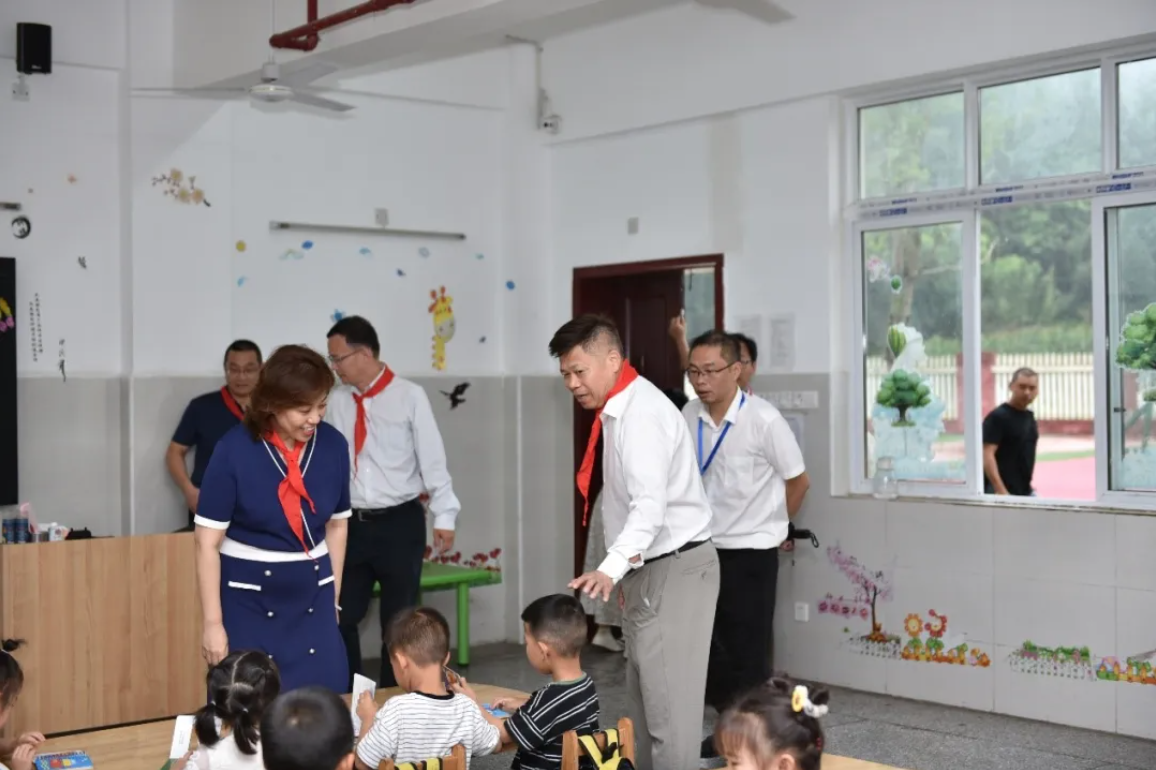 國貿(mào)中心成立40年來,在經(jīng)營業(yè)績不斷攀升的同時,始終堅持黨建引領(lǐng),堅定履行企業(yè)社會責(zé)任。為進(jìn)一步落實國貿(mào)小學(xué)幫扶計劃,2024年6月21日,中國國際貿(mào)易中心有限公司黨委副書記、國貿(mào)中心股份有限公司總經(jīng)理支陸遜,國貿(mào)中心黨委副書記、國貿(mào)中心有限公司副總經(jīng)理郎寬,工程部總監(jiān)、國貿(mào)小學(xué)名譽校長廖順雨一行,冒雨來到四川省宜賓市長寧縣硐底鎮(zhèn)中國國貿(mào)小學(xué),看望師生并為學(xué)生捐贈校服和體育用品。長寧縣硐底鎮(zhèn)黨委書記梁超,長寧縣教體局黨組成員、副局長丁志成出席活動。