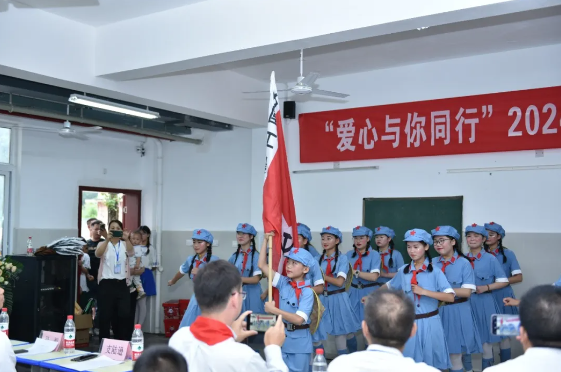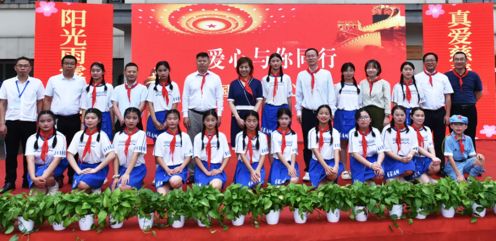 陸遜副書記、郎寬副書記、廖順雨名譽校長、梁超書記、丁志成副局長、國貿(mào)小學(xué)譚政校長及石埡村師元明支部書記共同為學(xué)生代表派發(fā)了校服、零食禮包及體育用品。
