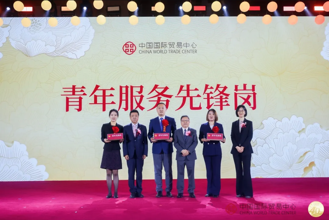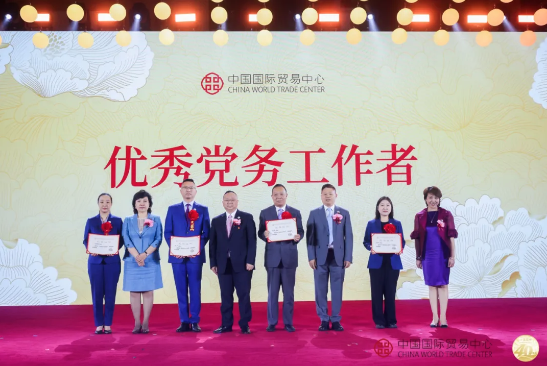 在新時代新征程上,國貿(mào)中心的高質(zhì)量發(fā)展始終凝聚著奮進力量。在國貿(mào)中心成立40周年之際,大會進行了國貿(mào)中心黨委“兩優(yōu)一先”表彰和“青年服務(wù)先鋒崗”授牌活動。國貿(mào)中心黨委書記吳相仁,副書記支陸遜、錢曉瑾和郎寬,分別為優(yōu)秀黨員代表、優(yōu)秀黨務(wù)工作者代表和先進基層黨組織代表頒發(fā)榮譽證書;國貿(mào)中心有限公司總經(jīng)理梁師麟、股份公司副總經(jīng)理鐘榮明、胡燕敏分別為中國大飯店前臺、國貿(mào)寫字樓禮賓部、國貿(mào)大酒店酒廊餐廳進行“青年服務(wù)先鋒崗”授牌。