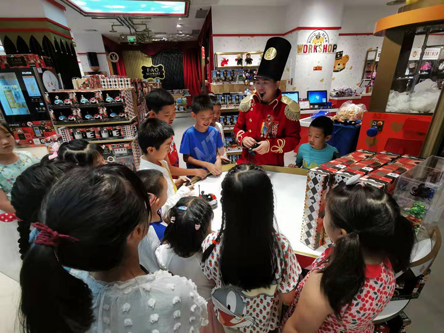 FAO Schwarz是一家擁有157年歷史的國際知名玩具店品牌,今年5月正式入駐國貿(mào)商城,總面積超過2600平米,是亞洲首家精品玩具旗艦店,近50個品牌的玩具體驗空間創(chuàng)下國貿(mào)最大單體玩具店記錄。當(dāng)日,孩子們在工作人員的帶領(lǐng)下,興致勃勃地體驗了魔術(shù)、動感鋼琴、賽車等活動,并與蜘蛛俠、森貝兒大白兔等卡通形象進行了合影留念。